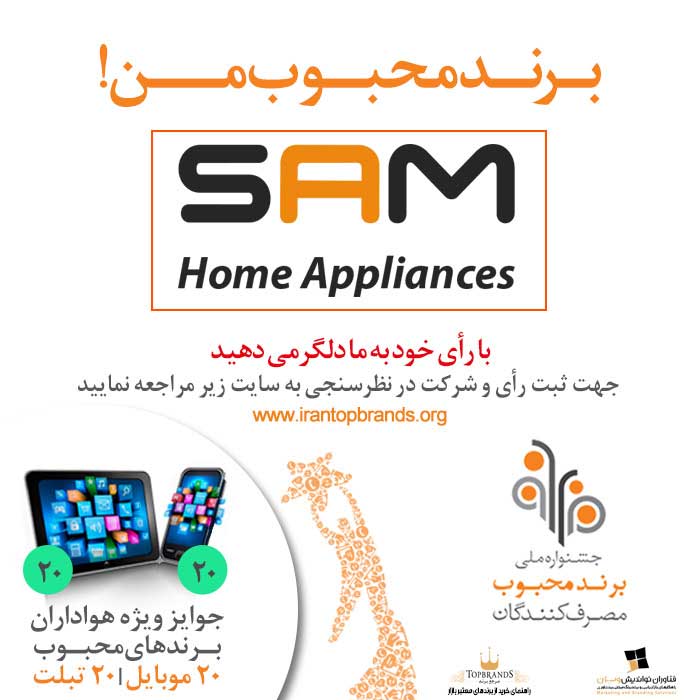 حضور برند سام در سومين دوره نظرسنجي مردمي جشنواره برند محبوب مصرف کنندگان